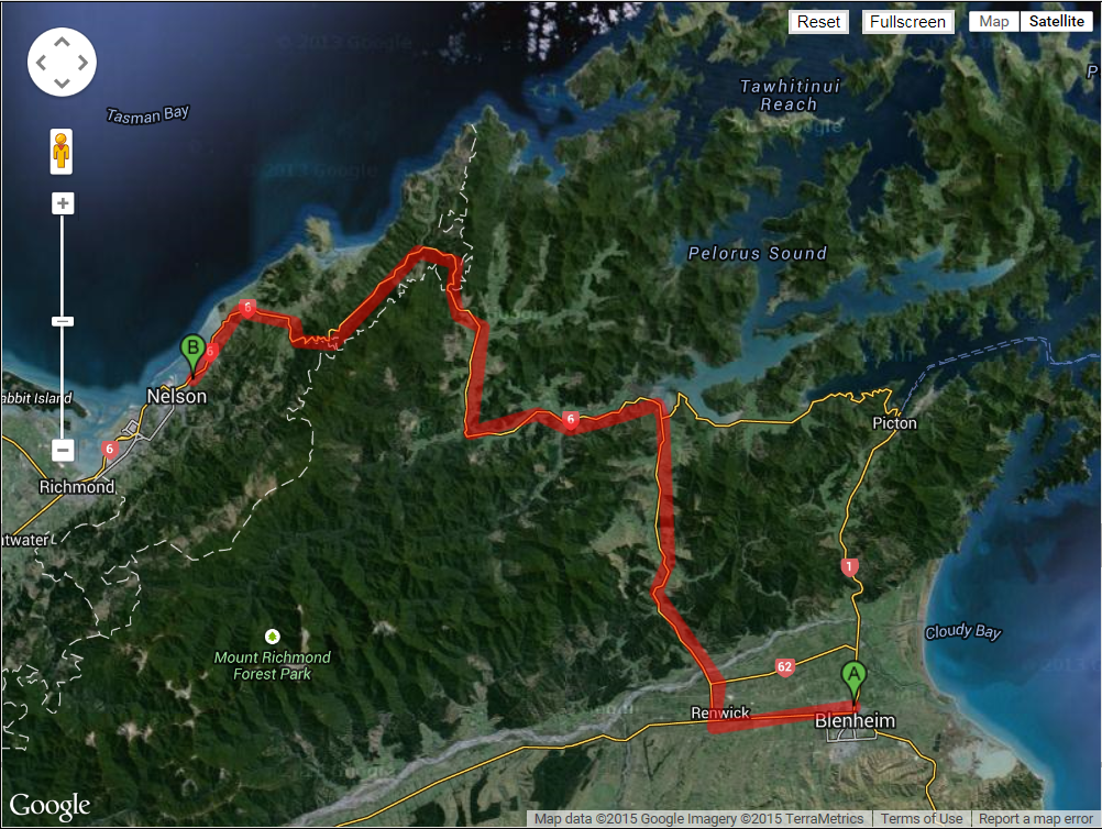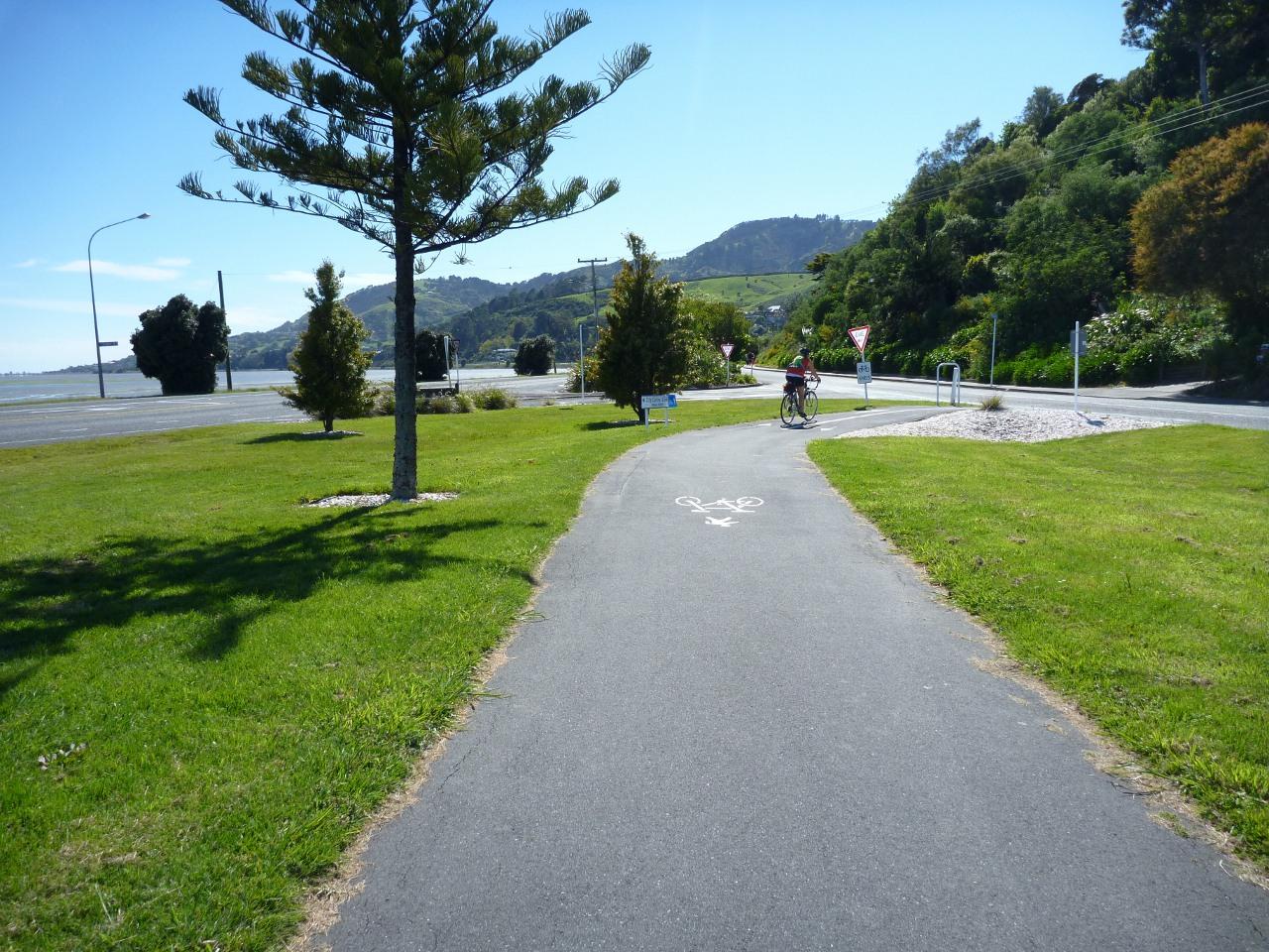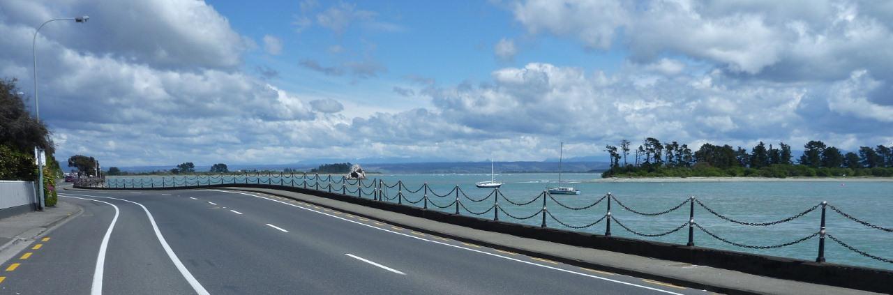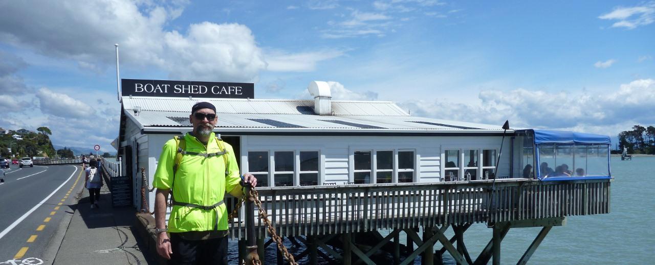 Sunday morning we had a nice leisurely 30 mile ride around Nelson without the panniers. I cannot think of a better way to see a town. We ended up at Tahunanui Beach with a nice lunch along the Port Nelson quay. Tomorrow we will travel about 72 km to Marahau where we have reservations for a cabin hire at Abel Tasman National Park.