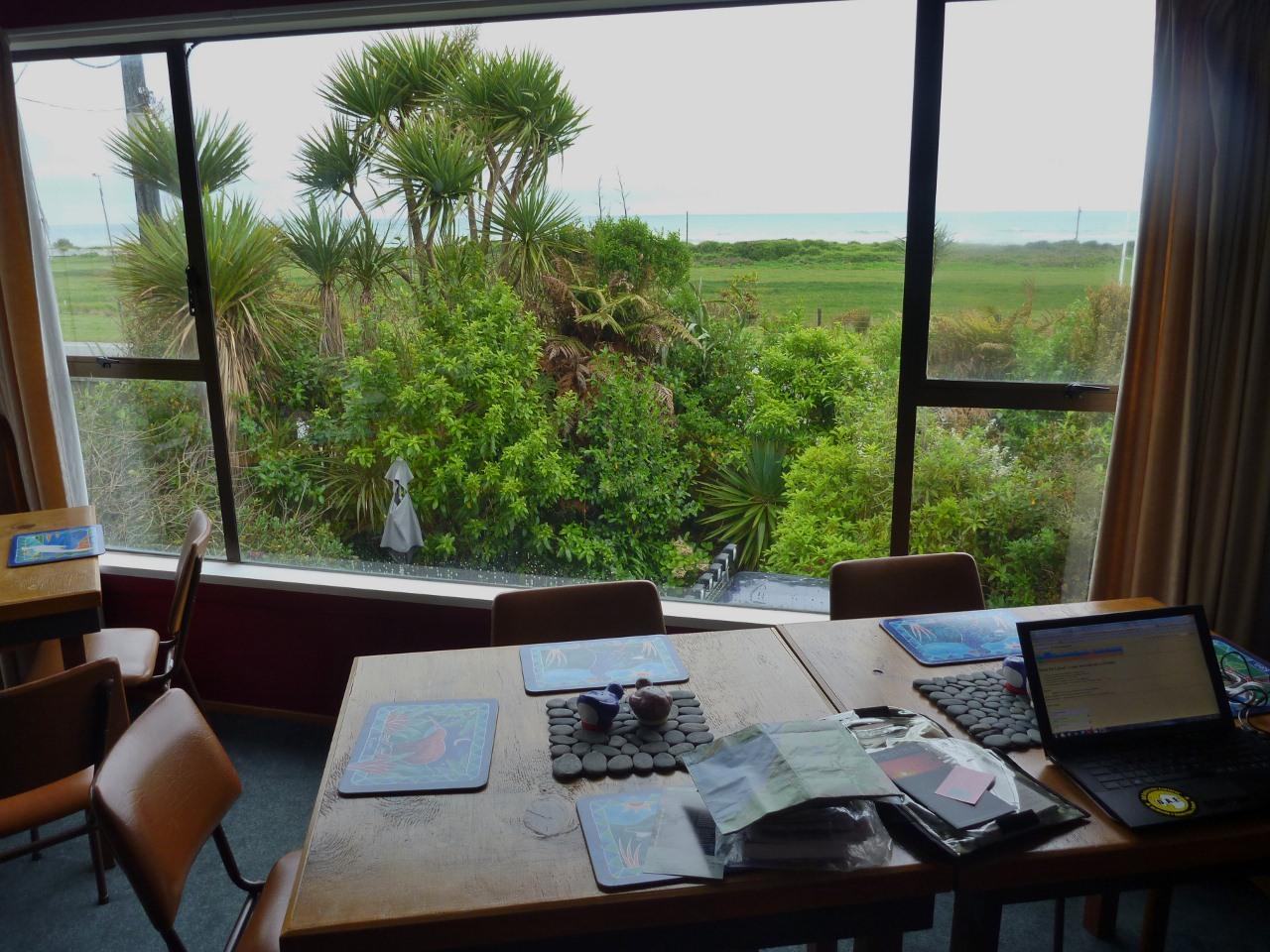 When we were in the Punakaiki Beach Hostel we met a guy that had started a new web site (bookme.co.nz) selling New Zealand adventures at a discount. He told us about Monteith’s Brewery tour in Greymouth at $6 each instead of the usual $20. So we booked two for the next night at 6pm. It was a five minute walk from Global Village Backpackers so we enjoyed the tour and tastings. While at the backpackers we met a couple from Wisconsin who were visiting their son who is here on a one year working visa. I told them about the tour and we saw them there. After the tour we had dinner with them at the brewery. What a fun time. Today started out raining again. We waited around to see what the weather was going to do so didn’t get on the road until after 10 when it stopped. Of course it started raining again and didn’t let up. So it was a cold and rainy ride to Hokitika, fortunately for only 26 miles. We arrived at another recommended backpackers called Birdsong. The proprietors were gone but left a note and key on the office door and told us to make ourselves at home. I love these kinds of accommodations. We cleaned up, and then called a taxi that took us the 2 km into town for a little lunch and shopping. The taxi driver was a real hoot and super friendly. He told us all the places we needed to check out. When we were done at the grocery store Jocelyn called him back for a pickup. When he asked if we had seen this and that and we said no he drove us around to show us the town. At the end he charged the same as when he first picked us up. It really is about the people.