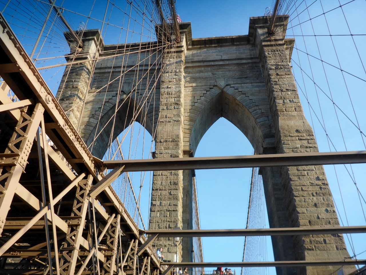 p1030158-1280×960 Published on October 19, 2016 in A tourist day in New York CityFull resolution (1280 × 960) ← Previous Next → The Brooklyn Bridge is a hybrid cable-stayed/suspension bridge in New York City and is one of the oldest bridges of either type in the United States. Completed in 1883, it connects the boroughs of Manhattan and Brooklyn by spanning the East River.