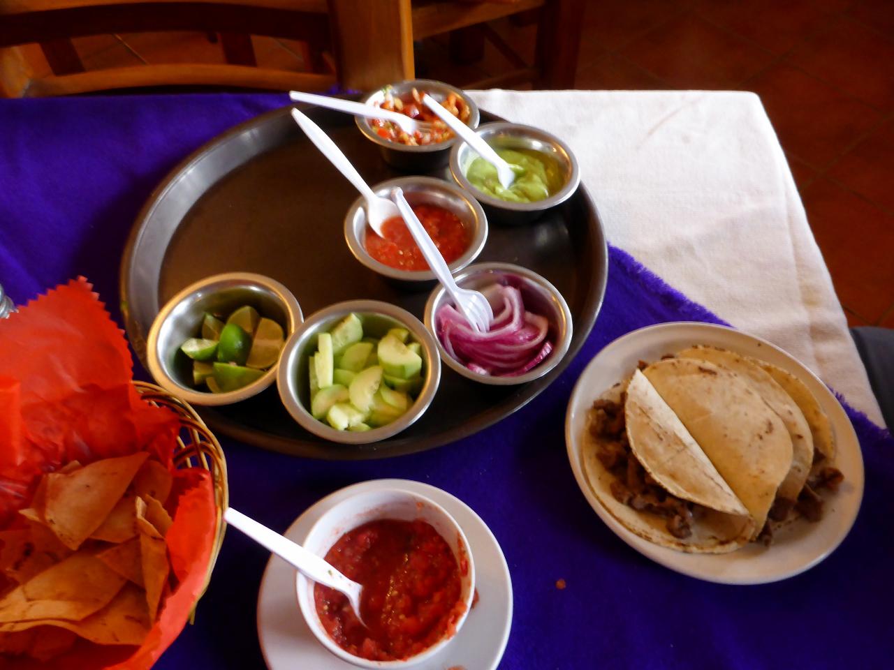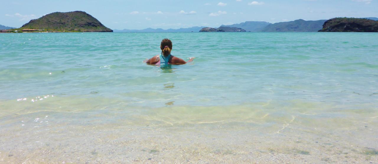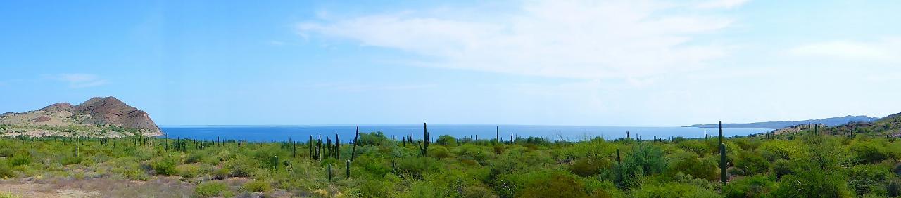 We left Mulege early with the hopes of beating the heat. Loaded on our already heavy bikes are 24 liters of water which amounts to almost an extra 53 pounds. Along with this is the continuous up and down terrain of Baja. We have been here 15 days now and have only seen a few hours of flatness. Which is fine except in combination with the heat. Last year riding through the Iranian deserts was mostly flat. After a few hours we came upon our first cabana lined beach and made a detour for swimming. The hot water was wet but not very refreshing. It reminded us of our beach in Cape Canaveral as that is also very warm this time of year. Several more miles down the road we found an open cafe with cold cervezas and fish tacos. We also found a fellow cyclist, Yru from Japan who is headed our way. He had been sitting there quite a while trying to cool down. Soon we joined by a fellow American IT consultant, Kirk who was working a job nearby. We had a nice visit with both of them. When it came time to leave Kirk paid the entire bill! What a nice guy. We love meeting fellow travelers and adventurers such as Yru and Kirk.