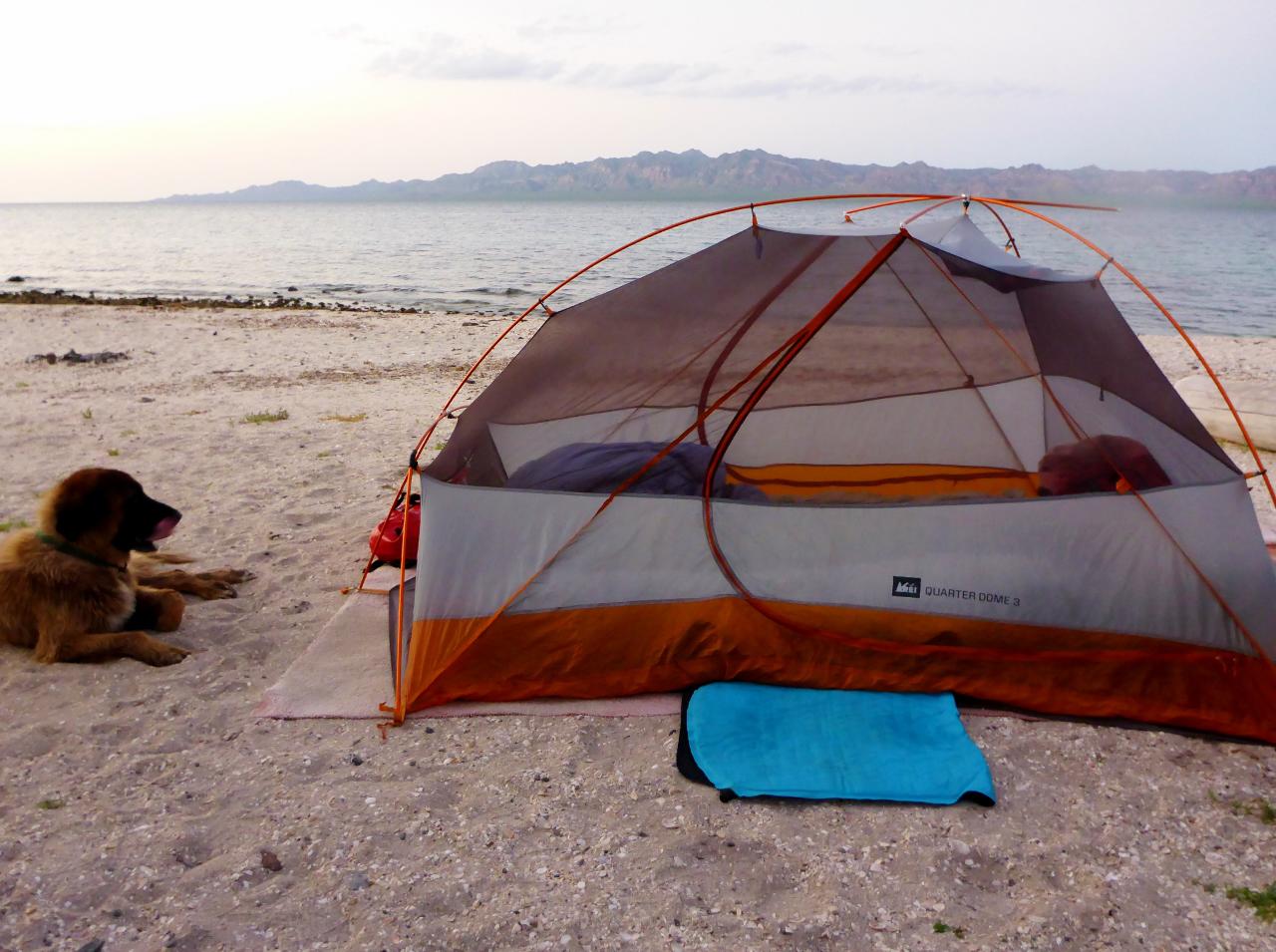 We continued south thinking about camping for the night on a deserted beach when we saw Playa Buena Ventura that advertised that it was open. Most of the beach restaurants and markets are closed until the season begins mid-October. Mark from Wisconsin and Lorraine own and work the property. Since there is no electricity or water this is a very challenging job but they have enjoyed doing this for the past 16 years. Several trips need to be made weekly for generator gas and water. It is a fun place and we enjoyed the evening with them then set up our tent on their beach. Today we rode to Loreto where we will take a break from the heat.