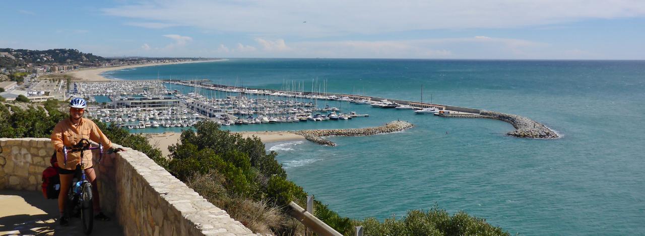 March 24, 2014 26 miles We arrived in Castelldefels, outside of Barcelona, on Sunday afternoon after a fun but sometimes scary cliff-side ride around a peninsula. Since it was a Sunday the narrow winding no shoulder road was filled with cars and roadies. Whenever there was room we pulled over to let strings of cars pass. The road was about 10 miles long with five climbs. It was fun but very nerve-racking at times. We had contacted another warmshowers.com host who lived nearby and was available for us on Monday so we found a room in a family bar/hotel. These are a lot of fun and in the bar that night there was a huge crowd watching Real Madrid take on Barcelona in futball. So we joined in the festivities. We were expecting a package from DHL so had planned to hang out a few days.
