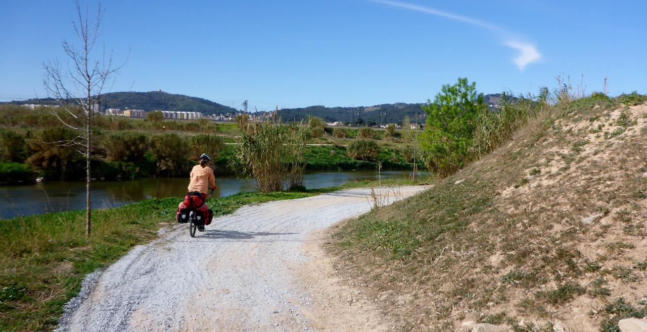 March 26, 2014 37 miles We said our good-byes to our very fun and gracious warmshowers hosts then started our ride around Barcelona as the city is too crowded to bike through and the airport prevents a coastal route. We rode inland into the hills along a river path then finally turned east and we are now in the town of Sabadell waiting for a large bike shop to reopen for the day at 5pm. In Spain shops close around 2 for siesta time. Jocelyn’s rear gears are slipping and my rear wheel needs to be trued.