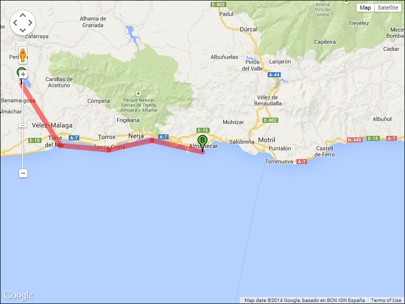 March 10, 2014 We decided to return to the coast since this stretch was all on N340 which parallels the dreaded A7. It was a great choice as the road reminded us of the northern California coastal route of Big Sur. Traffic was light and the scenery very heavy with cliff climbs to 600 feet over the sea. The day was long until we reached the town of Almunecar after 42 miles. There we found an inexpensive hotel and cafe that served an excellent pizza.
