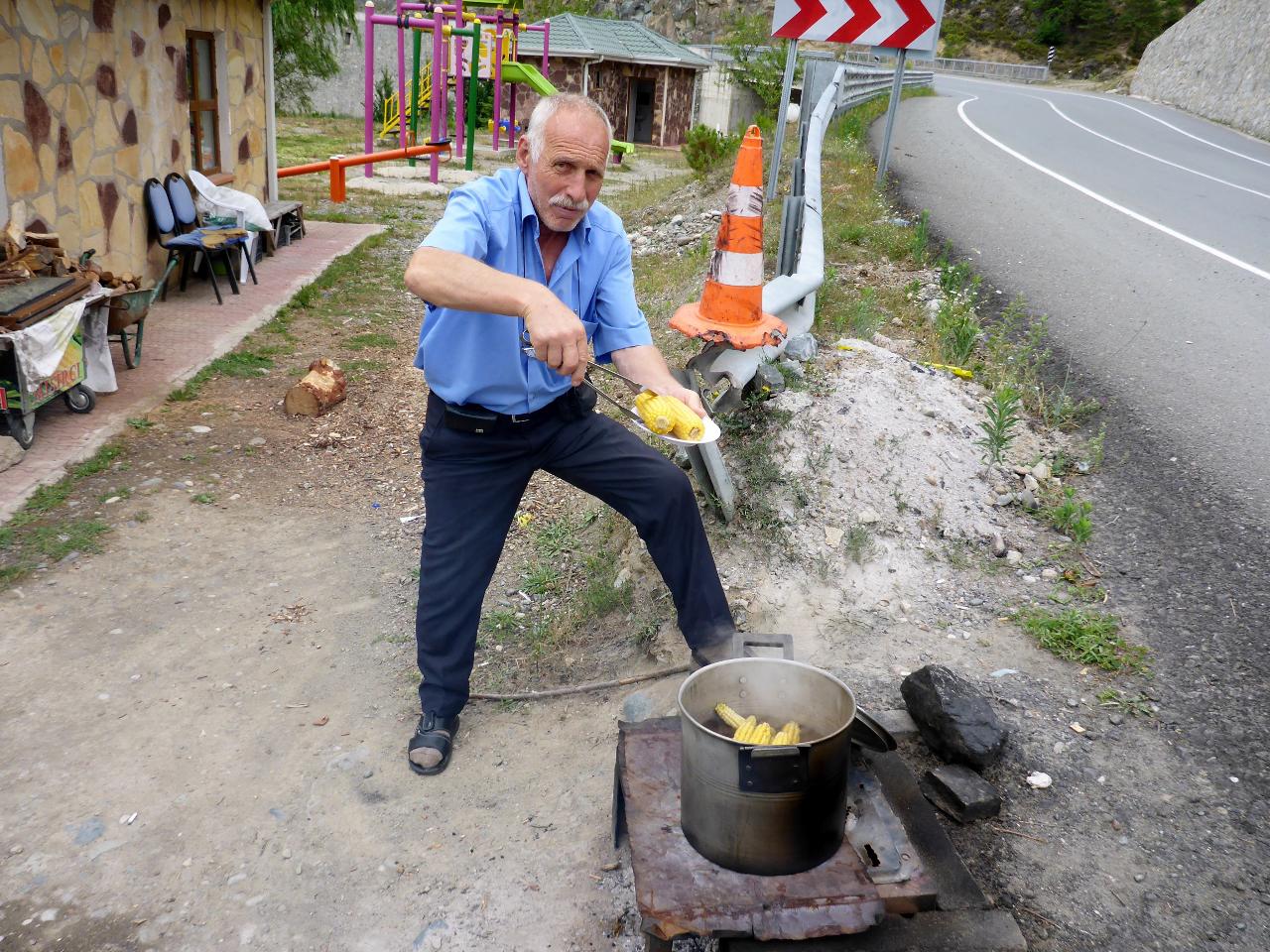 Monday July 7, 2014 42 miles The ride out of town was scary fast as we dropped 1200 feet in a matter of minutes. We then continued west and then north and immediately noticed trees on the mountains instead of just rock. The scenery was beautiful as we climbed then descended to the Black Sea city of Hopa. Once again we had one of our favorite rides and found a nice seaside hotel. We immediately noticed how busy the seaside road is and are glad with the mountain inland route we chose. Tomorrow Georgia!