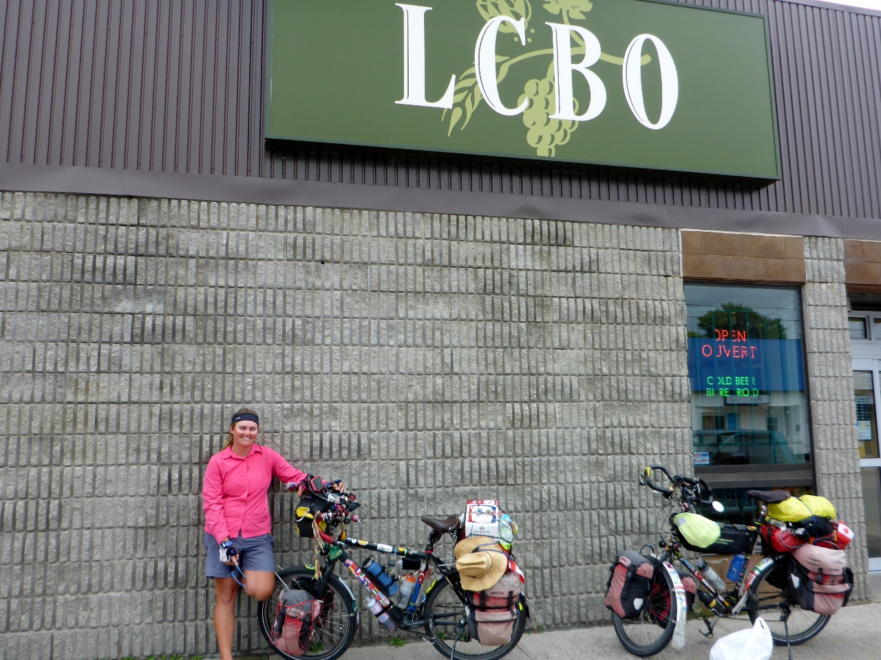 P1010897 (1280×960) (2) Published on August 15, 2016 in Continuing east through Ontario on the Trans-Canadian HighwayFull resolution (1280 × 960) ← Previous Next → An LCBO near a campground with beer strapped to Jocelyn’s bike and ice bought at a separate store. LCBO’s are not allowed to sell ice.