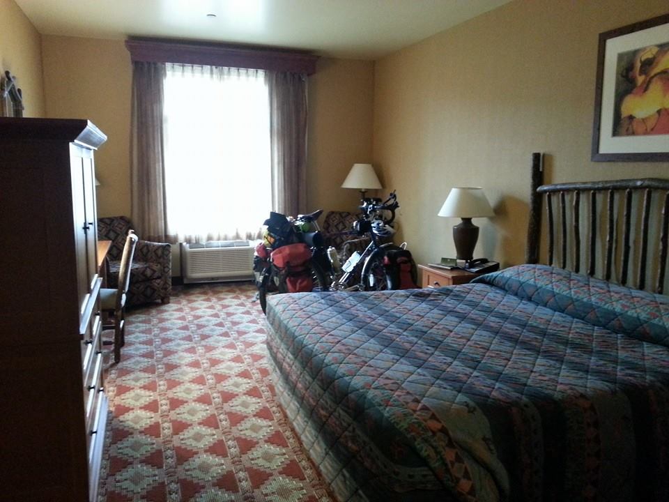 Woke up today on Eric’s air mattress feeling rather comfy. I thought I was hearing intense rain but when I looked outside it looked like its going to be a good day. I made a peanut butter/jelly sandwich for breakfast and Eric wished me good luck as I rode off. Thank you Eric, you’re an awesome guy and I wish you luck on the PCH! I jumped on the Palouse highway and sped through many rollers, with some climbs. After seeing many coffee/Humpday treats I knew I needed to stop. I found my favorite cookie my mom makes, 7-layer cookie and knew it was a sign. Though it wasn’t as good as my moms, she was heavy on my mind after. The temperatures dropped to low 40s and I double layered my gloves and socks. Just four miles before the border I stopped again to grab my last beer in Washington. I ended up staying there for almost two hours. Sitting with the locals getting my education on about Obamacare from a bunch of old guy blue collar guys. The rain started to come on through and I got invited to stay with some of the guys but I thanked them and said I had to get to Idaho! So my rain gear was on and I was off. A few more climbs, a lot of rain. Slick roads with a narrow shoulder brought me into Idaho. I was taking self-timer photos of myself at the welcome sign when a huge truck purposefully splashed my entire being with water. I was wet but now I was soaked and shaking from being too cold. I rode into the casino and decided to stay for the night. I couldn’t really afford it but I also couldn’t afford being frozen the rest of the day and night…I got lost trying to find my room and walked all through the casino with my bike. Lots of head turns, what a surprise! I had so much room in my room, took a hot shower and headed down to the casino. I was lost while in there, I don’t understand any of it besides blackjack. So I lost $22…and decided to get dinner, I had a lovely meal. Fine dining in my flipflops and shorts. Turned in early and am now enjoying a buffet breakfast!