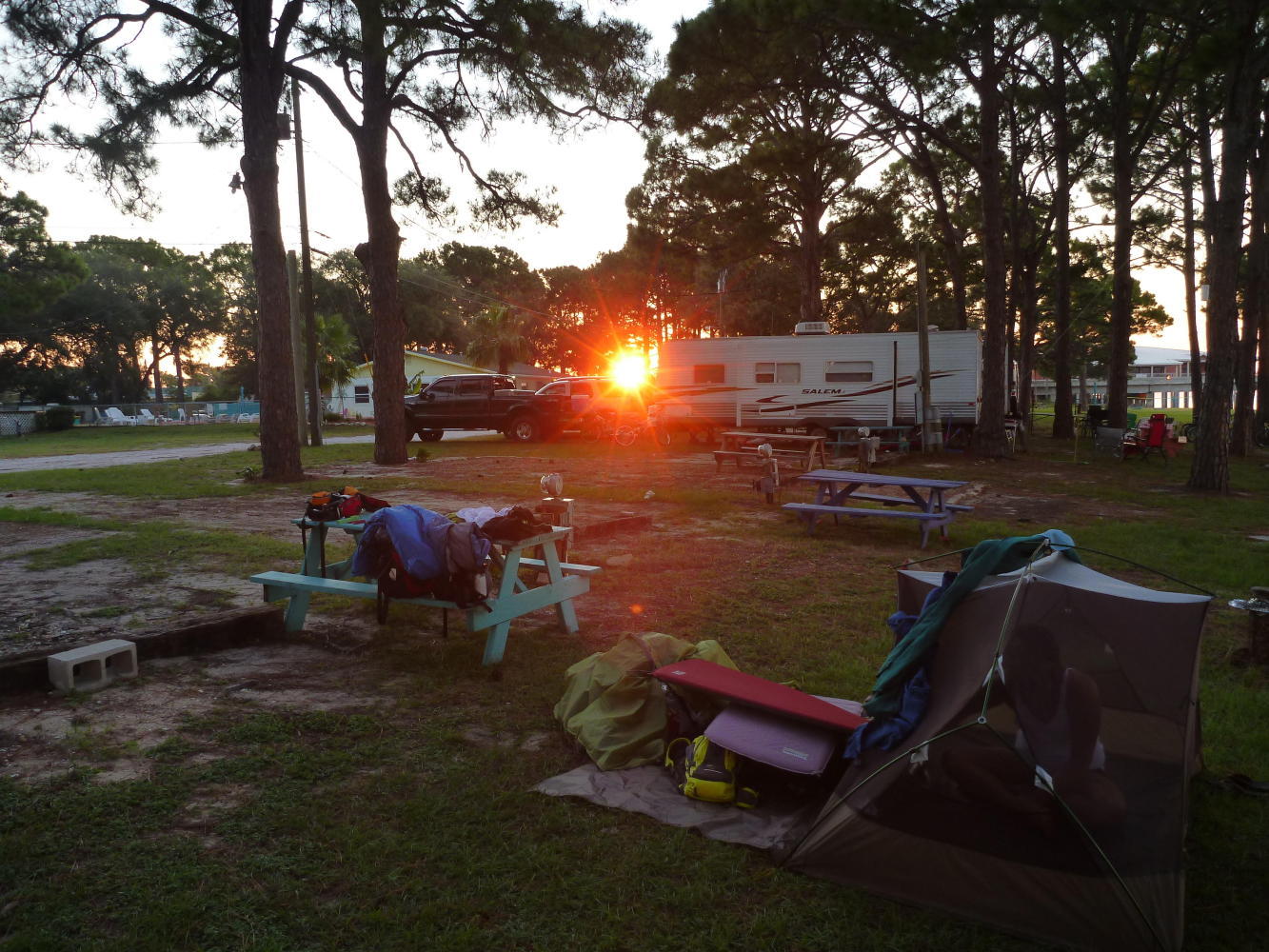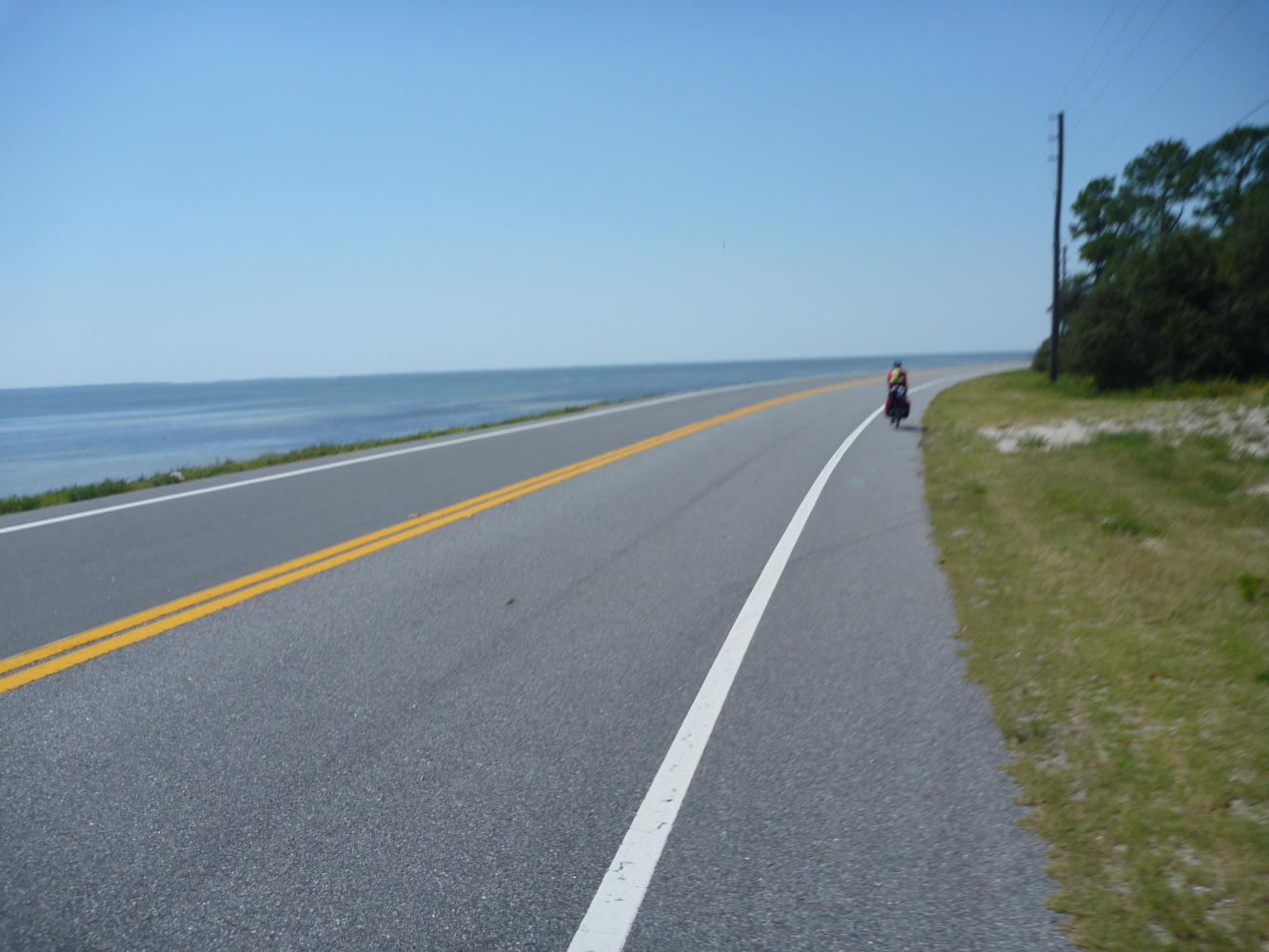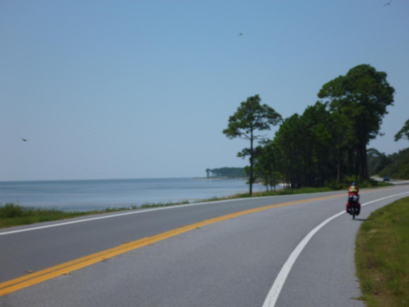 We woke at sunrise and it took us 2 hours to break camp and reload. It’s a lot of work to camp but we work well as a team. We began another long hot ride continuing west on HWY 98. But we are now riding on the coast and the butterflies are plentiful. It was still in the 100’s. We rode for several hours to Carrabelle when we stopped at an old time fountain diner – another excellent stop – where it seems all the locals were having lunch. We chatted with several of them. We first came upon a Subway and shook our heads. After several streets I glanced to the right and saw this gem. We had an excellent lunch and split a real malt for dessert. Calories are burned quickly while riding! We continued the ride over several bridges across to Apalachicola then decided to stop in Port St. Joe for the night. We are staying in an old converted building called the Port Inn and enjoying the hospitality.