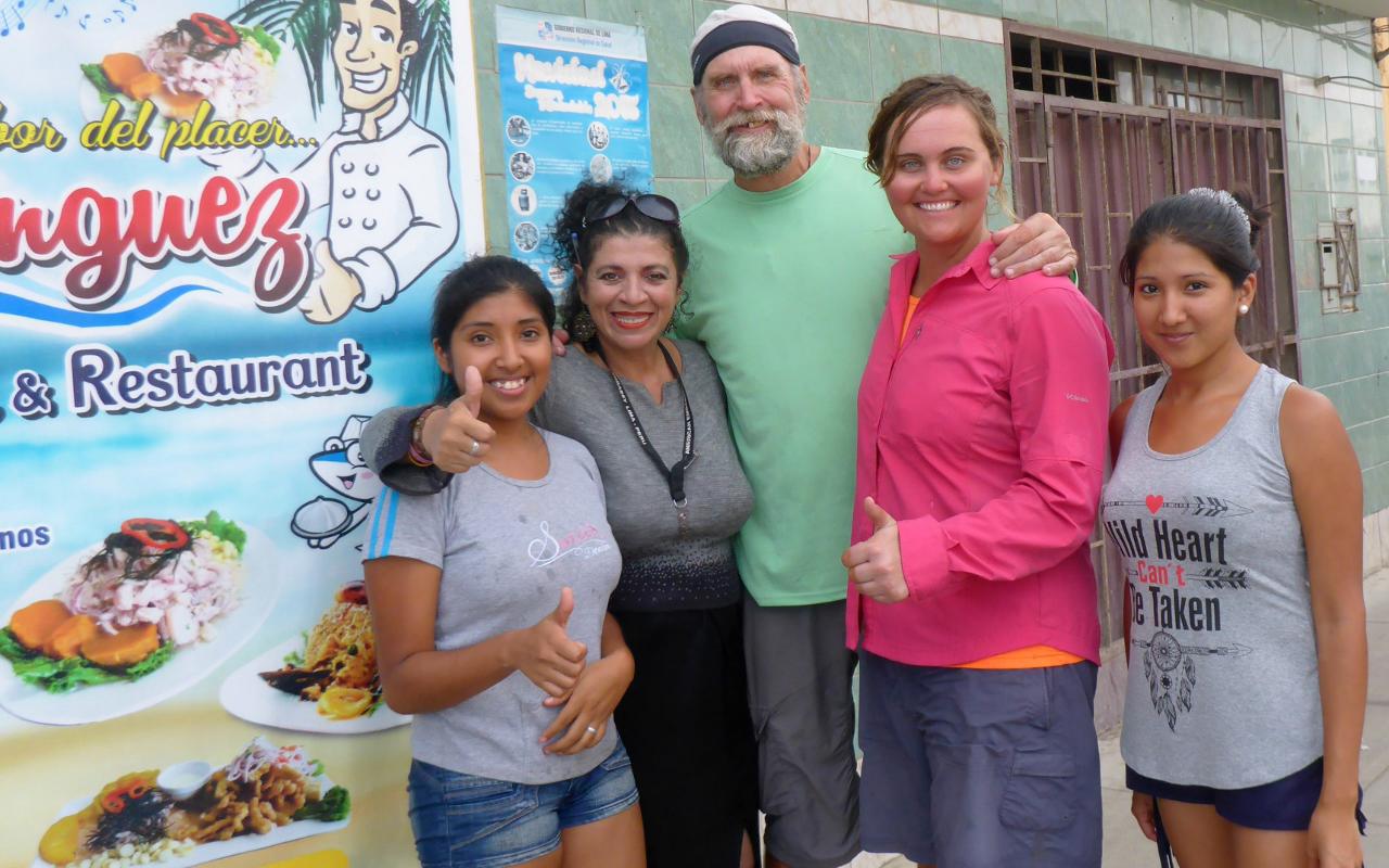 We met Elena from Puerto Rico (next to me) at the Dominquez family restaurant in Huacho along with two family members. Elena helped us with translation and was very nice to talk with.