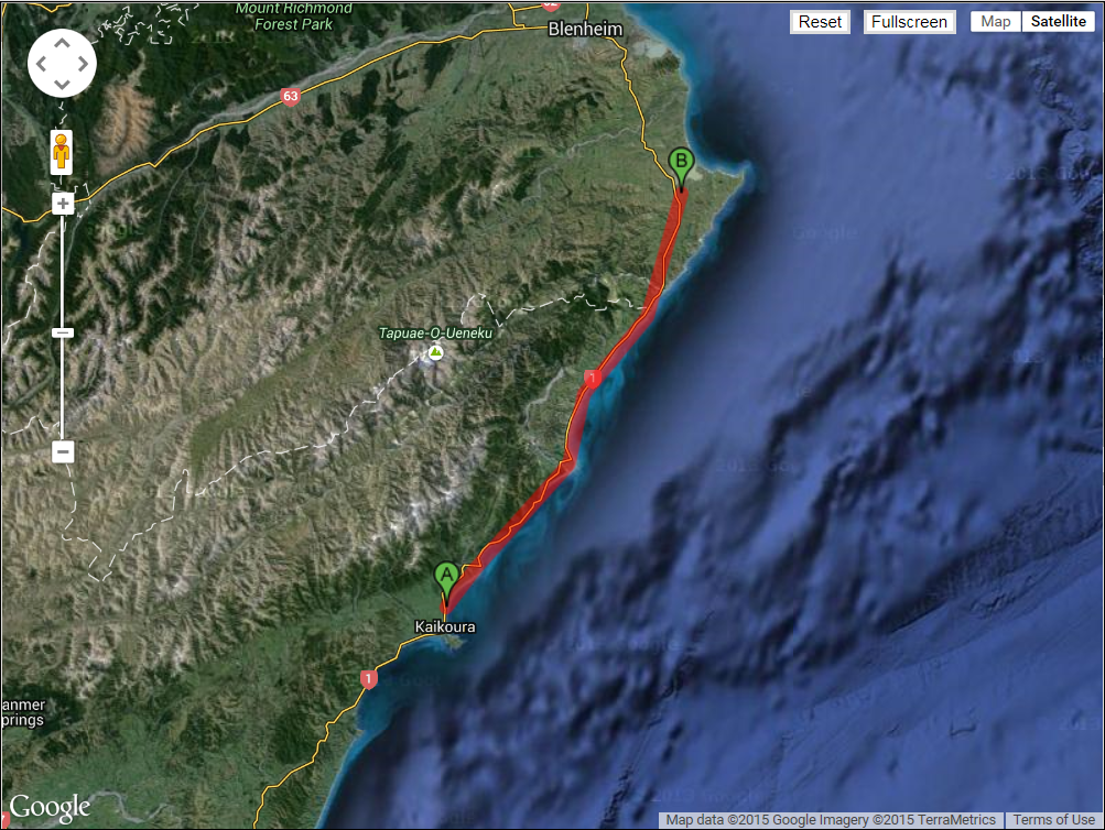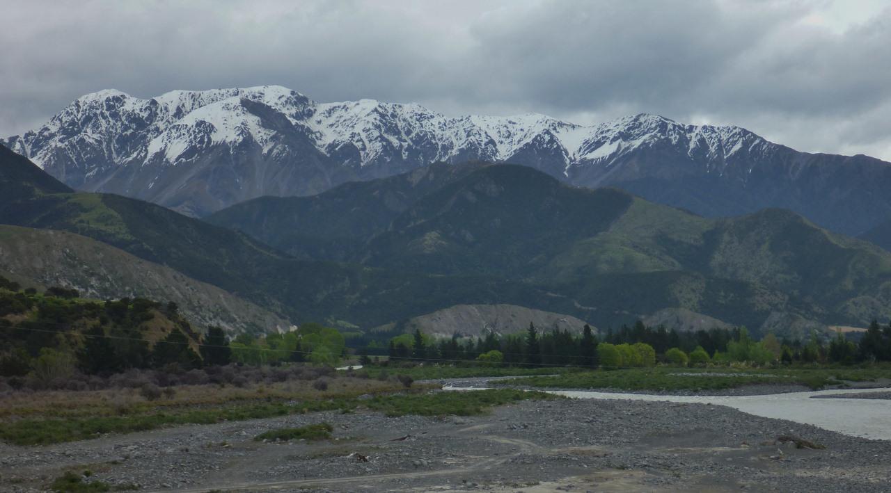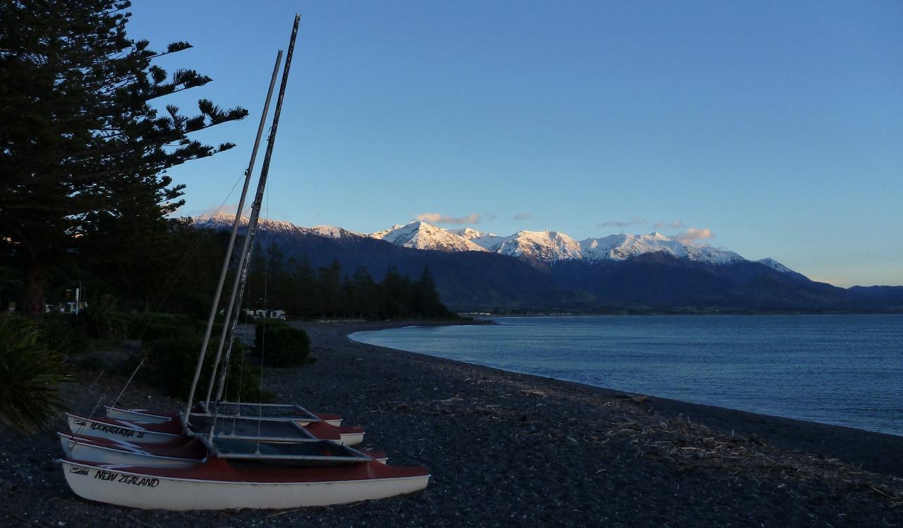 This morning we were greeted by the sun and a very hard northwest wind. The morning news reported the gusts were 120 kph (about 72 mph) so we thought about staying put but decided to give it a go. We were being buffeted all over the road and ended up walking the bikes. Frasier had told us the winds can be ferocious. That was an understatement. A wide load truck with six huge rain barrels passed us and we saw it turn over about a quarter of a mile up the road. A huge gust got under it and just put it on its side. The road was closed for quite a while as work crews and a crane came out. We were finally able to pass and continued walking. A policeman stopped to talk with us and felt bad that we were having such a struggle. At this point two Finnish girls were riding into Kaikoura so we and the policeman went over and talked with them about the road conditions further north. They said it was better on the coast, not as hilly and windy as the mountains were blocking the wind. It’s funny that they mentioned Pedallers Rest as a great place to stop so I told them we were headed there. A few miles up the road the coast turned more north and the wind stopped as it was blocked by the west mountain range.