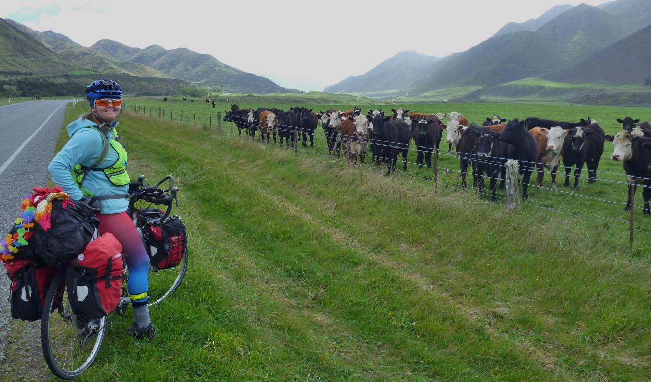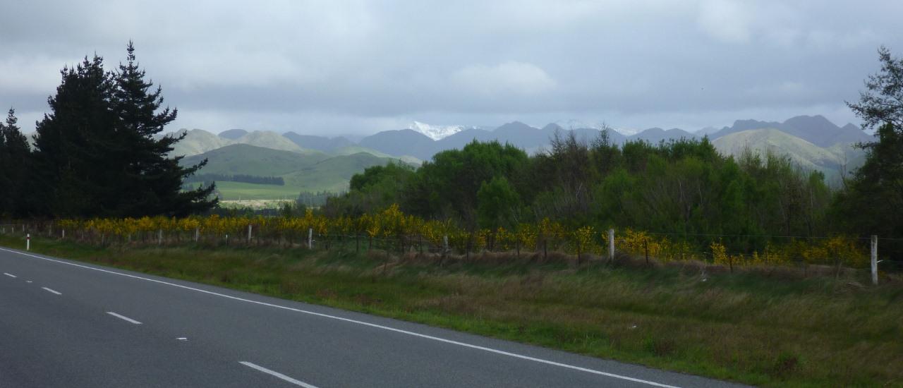 >We were up early but I had forgotten about a Skype appointment with my wife Andee. I have never used Skype before and really wasn’t interested but Jocelyn did talk with her mom for quite a while. I was busy wanting to get on the road. So by the time we did pull out the sunny morning gave way to clouds and wind. I figured we didn’t have too far to go as it was only 20 miles to Hanmer Springs. It was a nice Monday morning but the weather was threatening so we didn’t stop much except for more sheep and cow pictures.