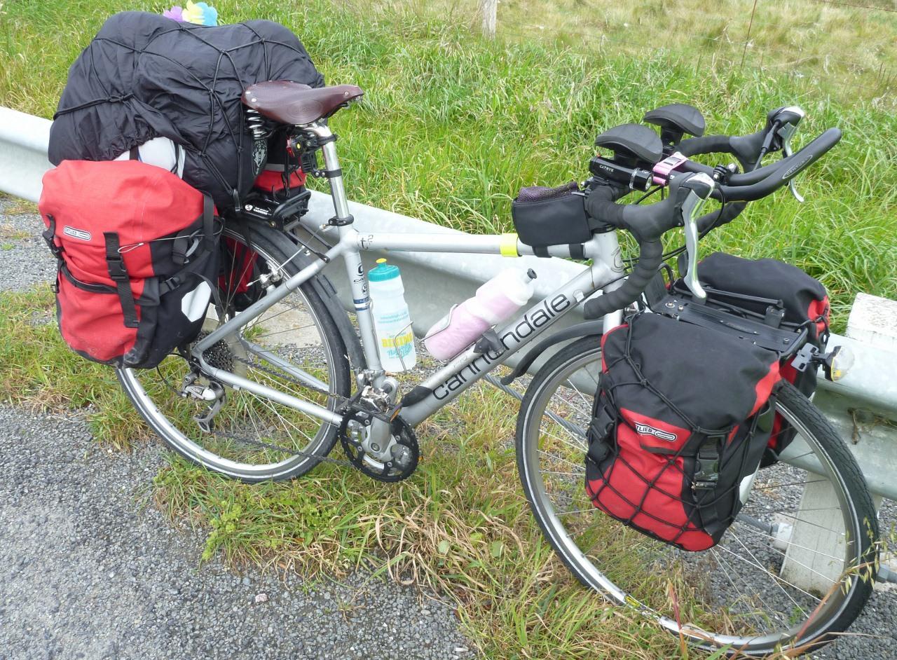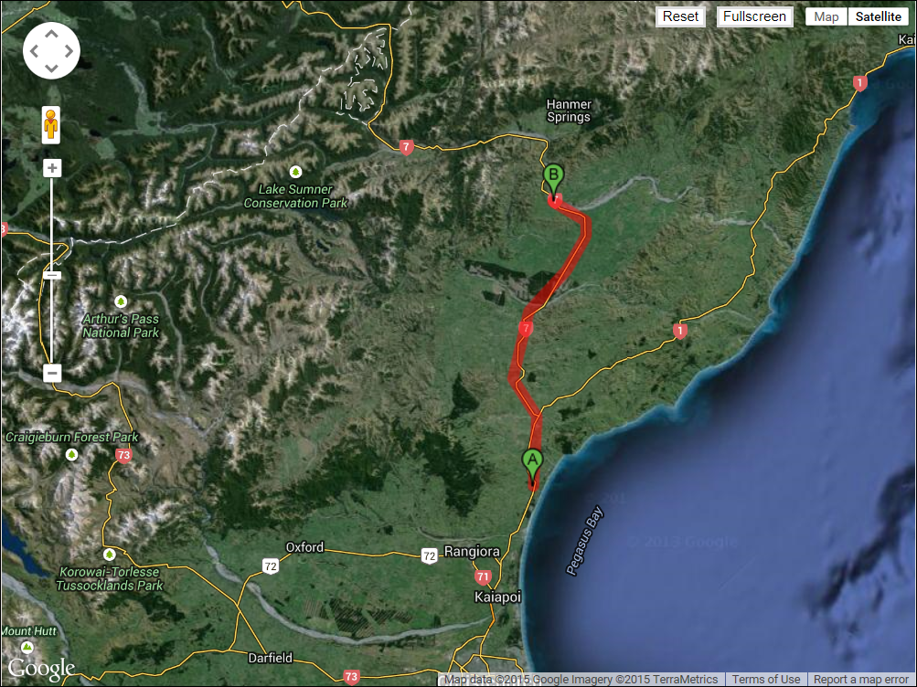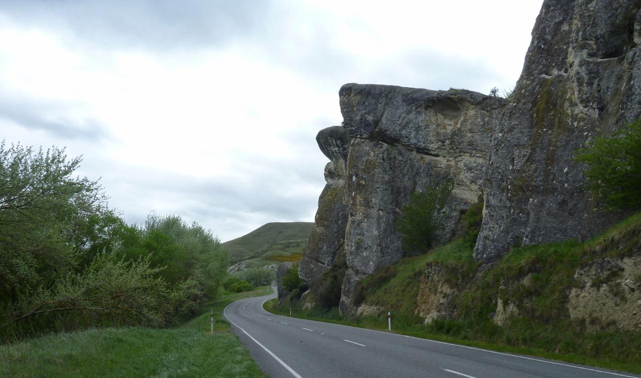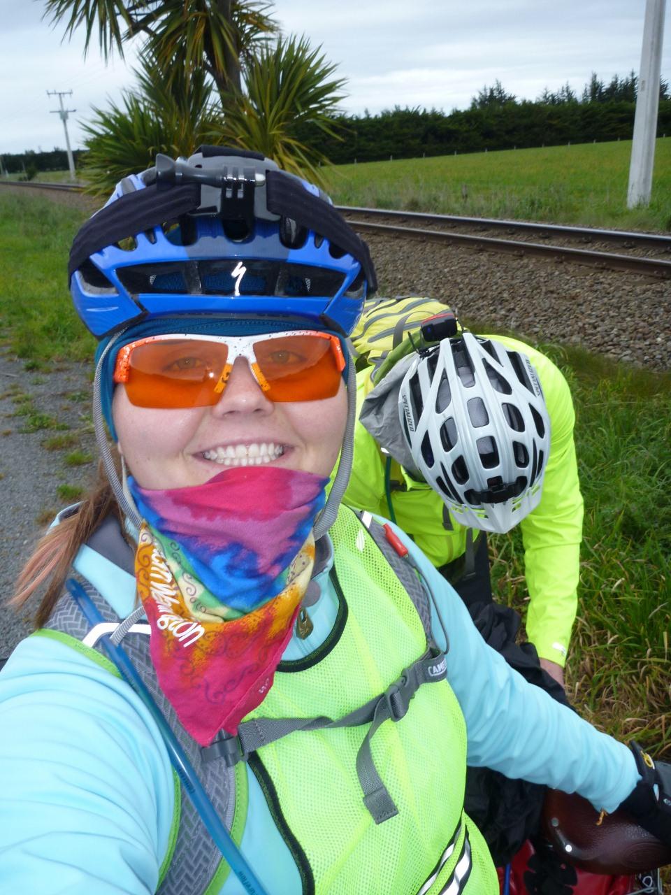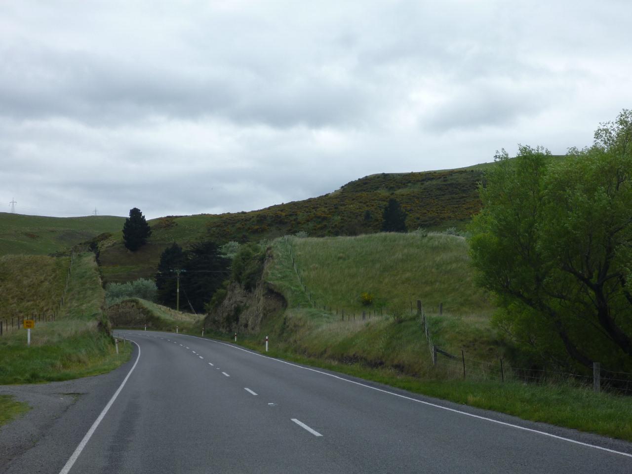 The weather looked good this morning so we were on the road by 7 am. It was cold but that was expected so we dressed appropriately. About a mile out of town I was noticing a noise from the front of my bike so I pulled over. A nice Kiwi gentleman driving by pulled over and asked if we needed help. He said he had tools and would stand by until we were back on the road. The front rack bracket that attaches to the main post had bent and dropped the rack onto the tire. With the Kiwi’s help we were able to bend it back up and I fortunately had several zip ties on hand to strap the rack up to reduce the load on the bracket. He was also going to Hanmer and asked if we would like a lift. I politely declined even though it was very cold and windy. We were back on the road but about 5 miles later the rack again collapsed. At this point I removed the rack along with the weak bracket then reattached the rack legs and the top with zip ties. That did the trick and we were on the road again. We did have several problems with brakes rubbing on the wheels but after several stops and adjustments we continued.